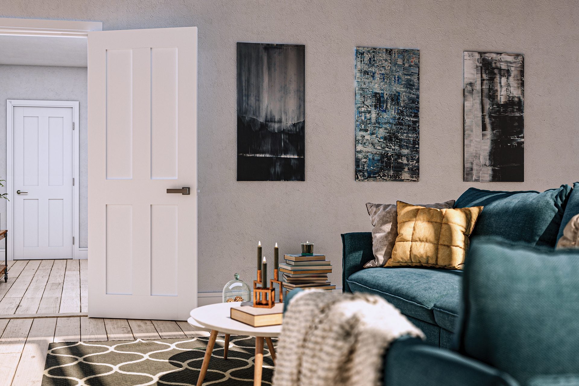 The Eton solid white primed door is simple and chic. The straight-cut edges of its four panels are characteristic of the shaker style, whilst a slight size difference between the two pairs of panels adds a little piquancy to the plainness.