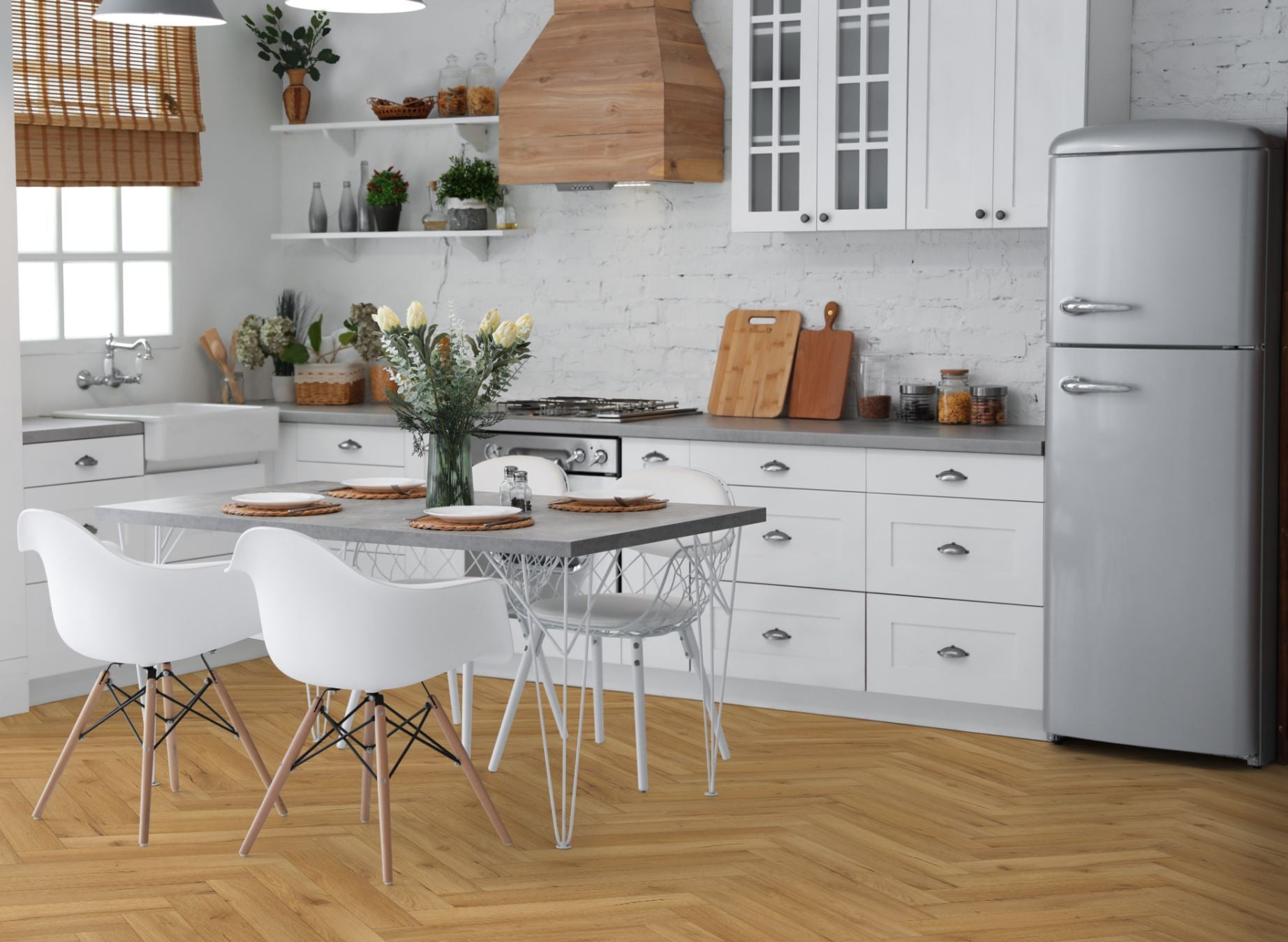 This stunning, laminate click Herringbone collection is an alternative to our current engineered 14mm Herringbone collection. Once you get started they fit together easily to create a stunning finished floor. This range can be installed readily by the most enthusiastic DIY-er. All designs have an AC4 commercial rating, so are really hard wearing and can be used in commercial premises, as well as being more than suitable for a busy home. They are ideal for a lounge, kitchen, dining room or hallway and are sure to create a wow factor due to the authenticity of the designs.